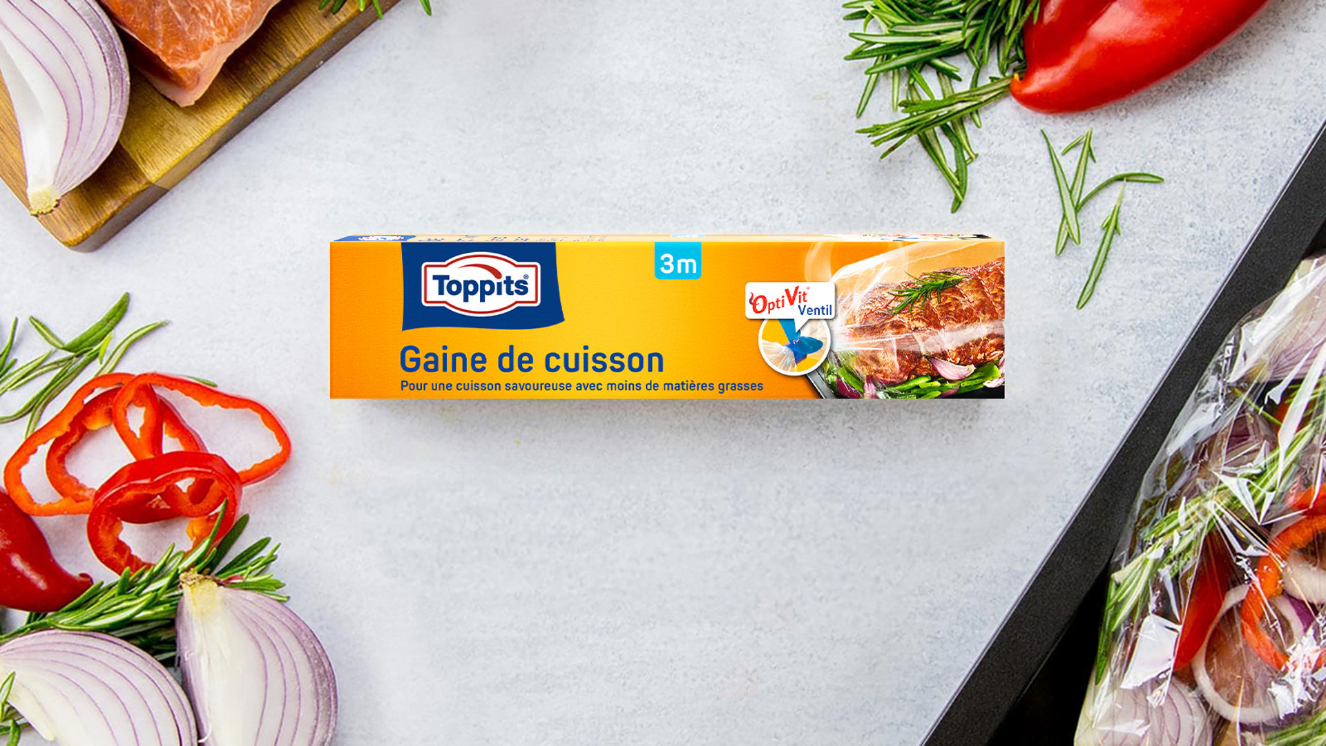 Pour des plats savoureux sans ajout de matière grasse : les Sacs Cuisson au Four Adaptables Toppits® assurent une cuisson homogène, propre et pratique pour tous les aliments.